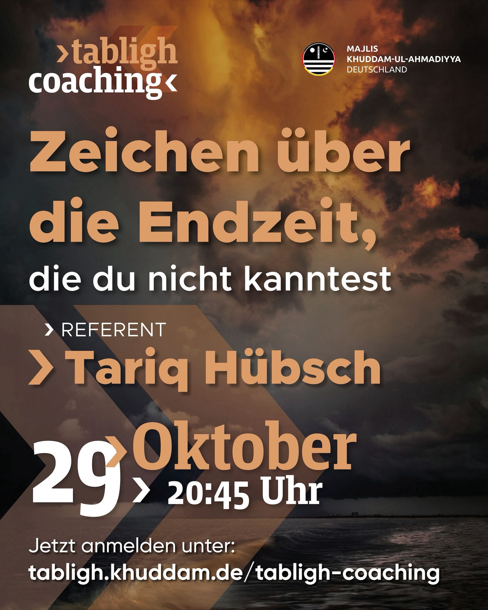 Das Tabligh Coaching ist ein monatlich stattfindendes Programm, das speziell zur Ausbildung und Wissenserweiterung der Khuddam-Brüder ins Leben gerufen wurde. Ziel dieses Programms ist es, den Brüdern fundiertes Wissen über aktuelle Themen und Ereignisse zu vermitteln. Dadurch sind die bestens auf den interreligiösen Dialog vorbreitet und können souverän auf mögliche Fragen externer Gesprächspartner reagieren.